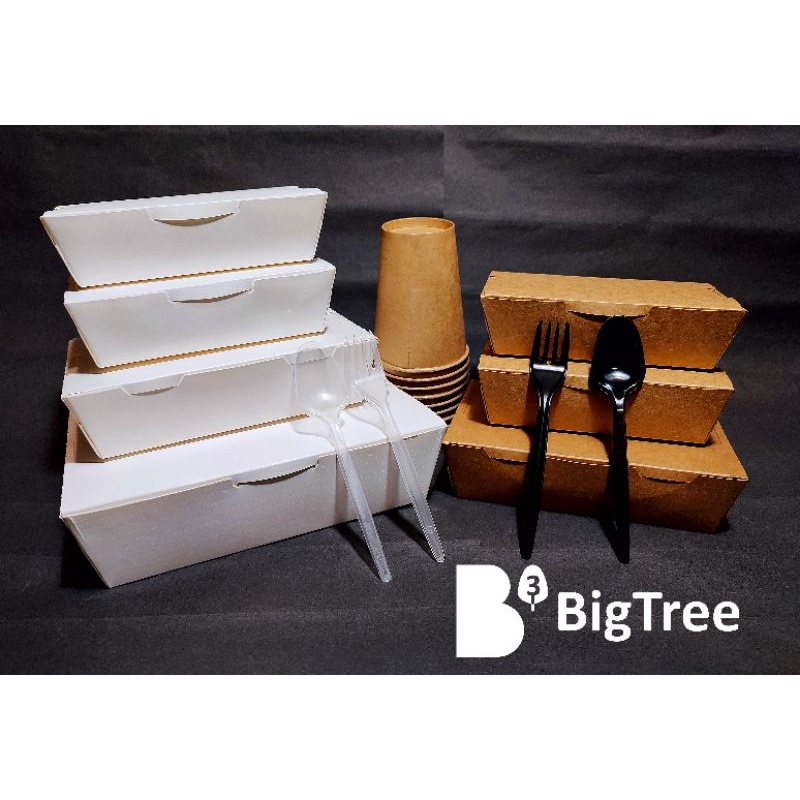 Big Tree Paper Lunch Box 10pkt X 50pcs 500pcs Medium M Size Brown White Kotak Nasi Kertas Bekas Makanan Shopee Malaysia